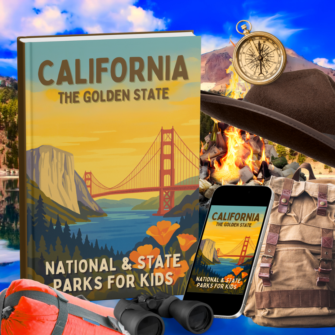 California: The Golden State – National & State Parks for Kids introduces young adventurers to the beauty and history of California’s iconic national and state parks. Perfect for children ages 5-12, this vibrant, fun-filled guide takes kids on an exciting journey through parks like Yosemite, Sequoia, Joshua Tree, and more.
